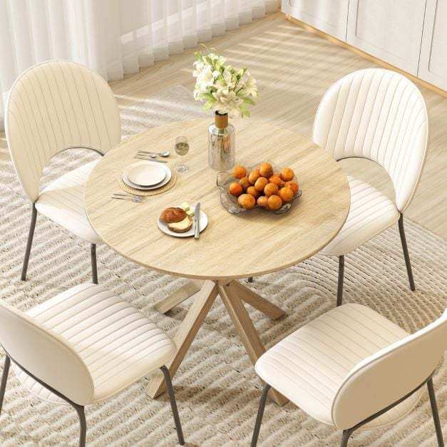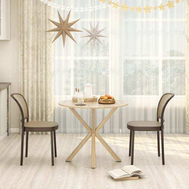 ● Intersecting Pedestal Base: The wood dinette table boasts a unique intersecting pedestal base in an X-shaped design. This innovative construction not only adds a touch of novelty to your dining area but also provides exceptional sturdiness.