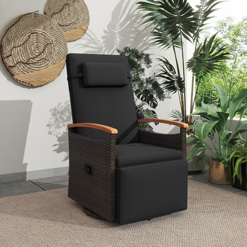 ● Handwoven PE Rattan: Constructed with durable PE rattan that resists fading and weathering, this recliner is perfect for long-lasting outdoor use.
