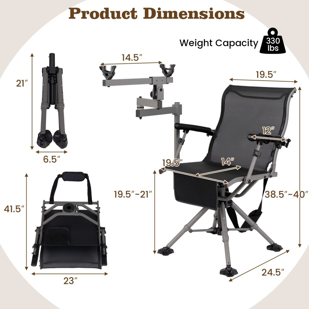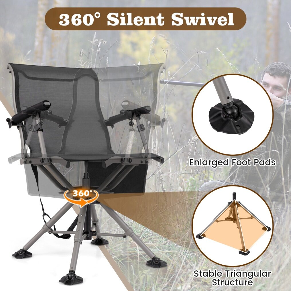 ● 360° Swivel and Sturdy Frame: This hunting chair comes with 360° swivel function, which allows you to glide seamlessly in all directions. The stable triangular structure and enlarged foot pads offer stable support for your hunting adventures.