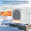 ● Multi-room Cooling Solution: Designed to cool any corner of your home, this 36000 BTU 4 zone mini split air conditioner can independently adjust the temperature to meet the individual needs of different rooms. The chassis heating function maintains the normal operation of the outdoor unit, enabling it to withstand any climate conditions (-13℉~125℉).