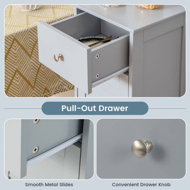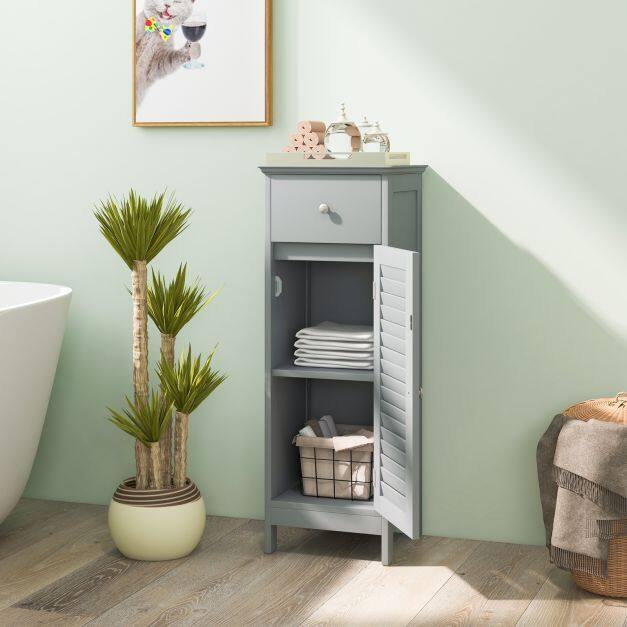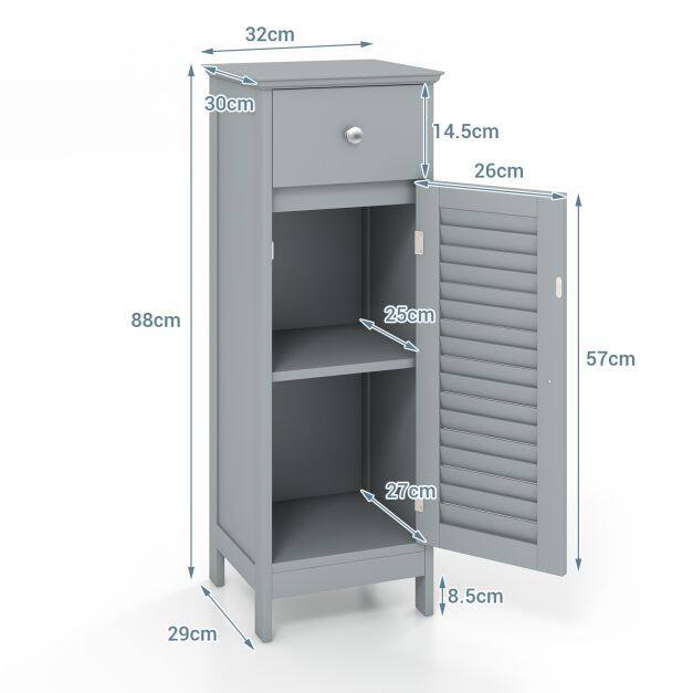 ● Space Saver with Large Storage Capacity: Coming with large storage space and one drawer, this floor cabinet helps keep everything in order. Large things like bath supplies can be stored in a cabinet that has a shutter door for better privacy. The top board can hold small items like decorations or incense.