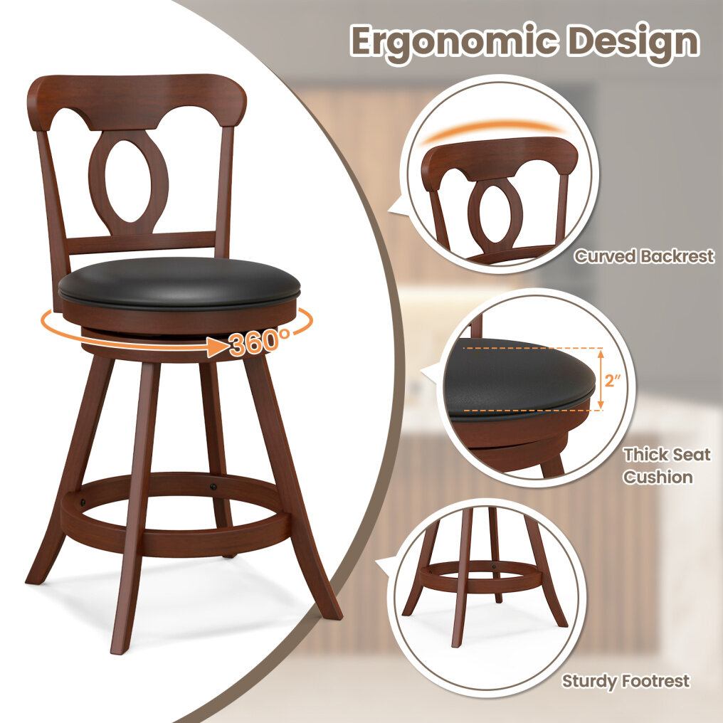 ● User-friendly Details: The counter/bar height chair is fitted with a 360° swivel chassis that rotates smoothly and stably, giving you an all-around view and allowing face-to-face talk. What's more, there are non-slip foot pads to avoid scratching the floor when you move the chair.