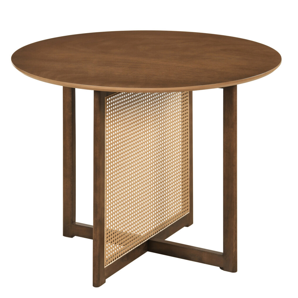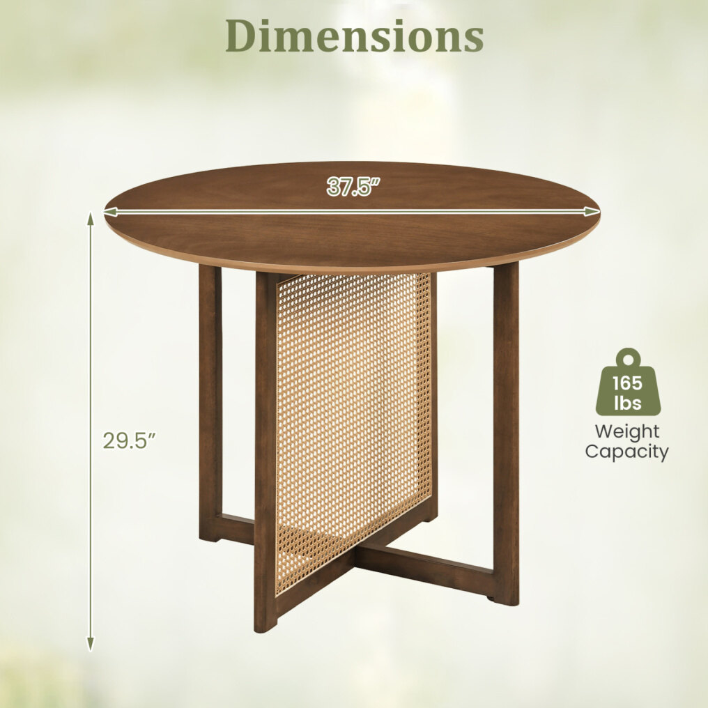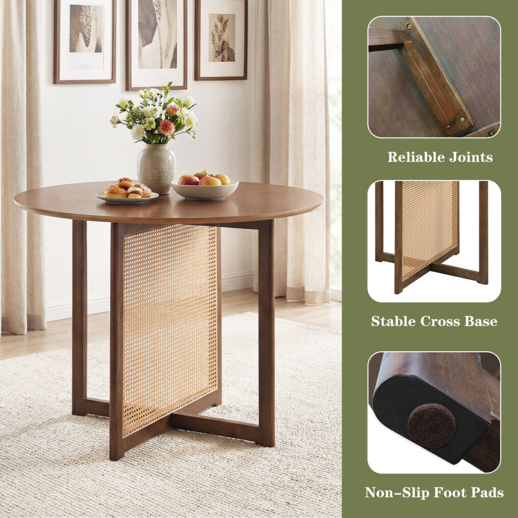 ● Natural and Modern Appeal: This circle dinner table features a sophisticated blend of natural wood grains and decorative PE rattan weave, elevating your home's ambiance. Its mid-century modern aesthetic seamlessly complements most interiors.