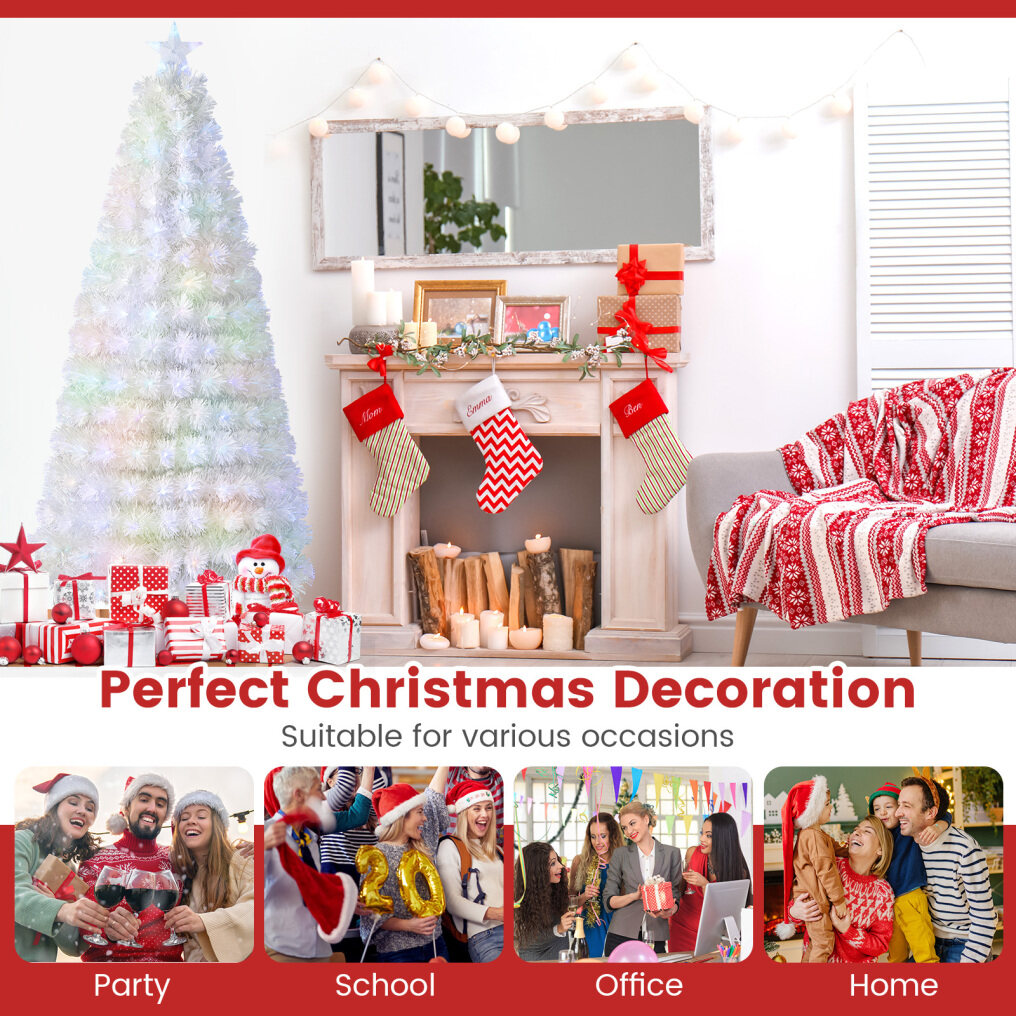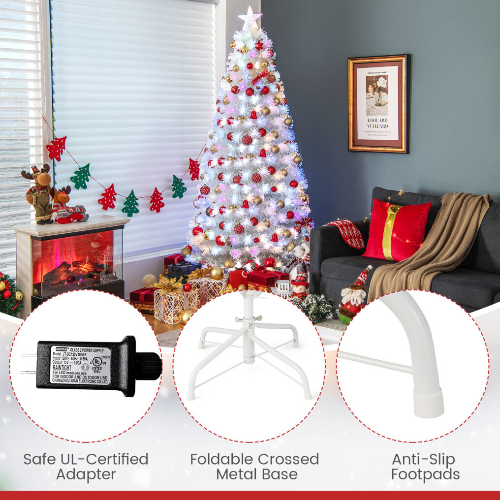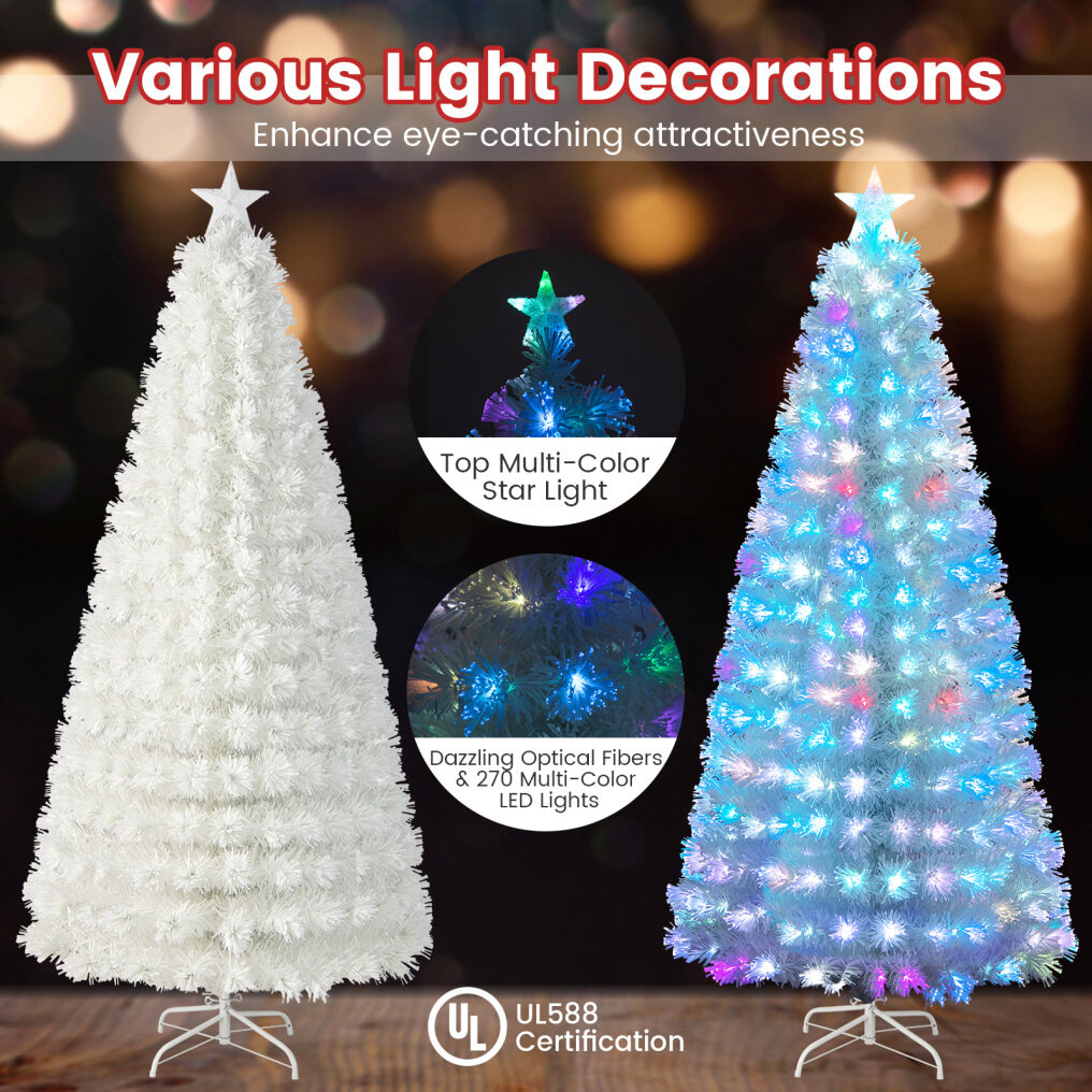 ● Various Light Decorations: The pre-lit Christmas tree is adorned with dazzling optical fibers and 220/270 multi-color LED lights, providing a mesmerizing light show that will captivate everyone's attention. Besides, there exists a top multi-color star light, enhancing eye-catching attractiveness.