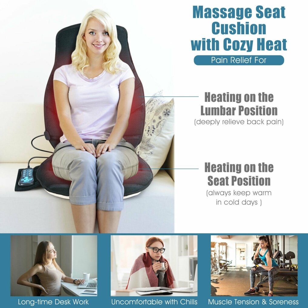 ● Relaxing Vibration Massage: Equipped with 6 invigorating vibration motors, the back massager seat delivers spa-like vibrating massage to your muscles to help relieve muscle pain, tension, stress and eliminate fatigue after day work or a long trip. It is a vibrating massager only, not a shiatsu massage with roller balls.