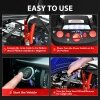 ● LED Flashlight and Smart Clamps: Thanks to its LED light, this safe jump-start not only serves as your flashlight to help you work in the night, but also can be used as a strobe light in case of an emergency. In addition, the red (positive +) clamp and black (negative -) clamp are made of full metal which is more durable for long time use.