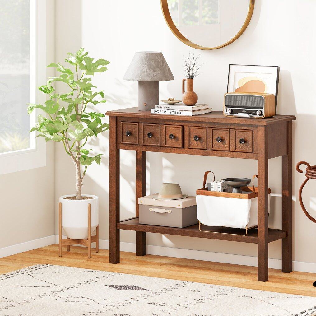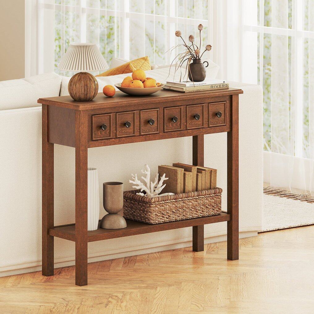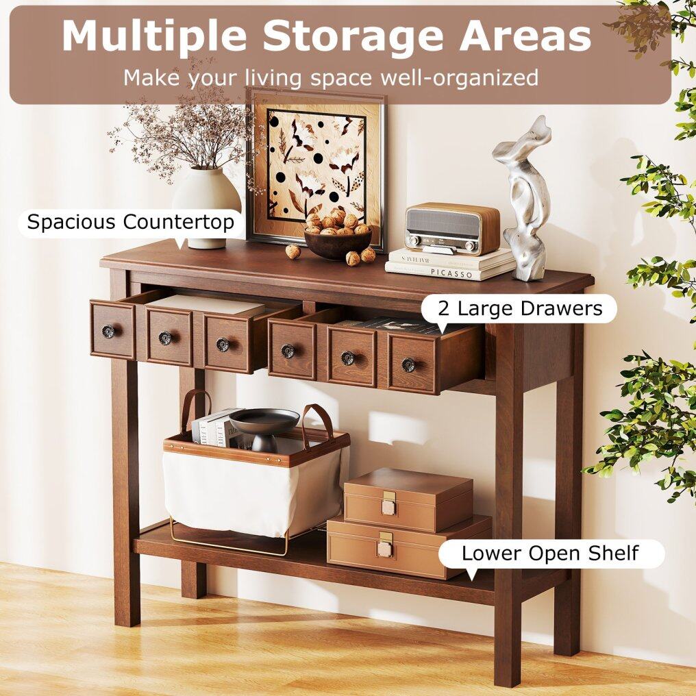 ● Spacious Storage Solutions: Designed with a spacious tabletop, a lower open shelf and 2 two large drawers, this entryway table offers multiple storage areas for keys, books, and decorations. Such a functional storage design will make your living space well-organized.