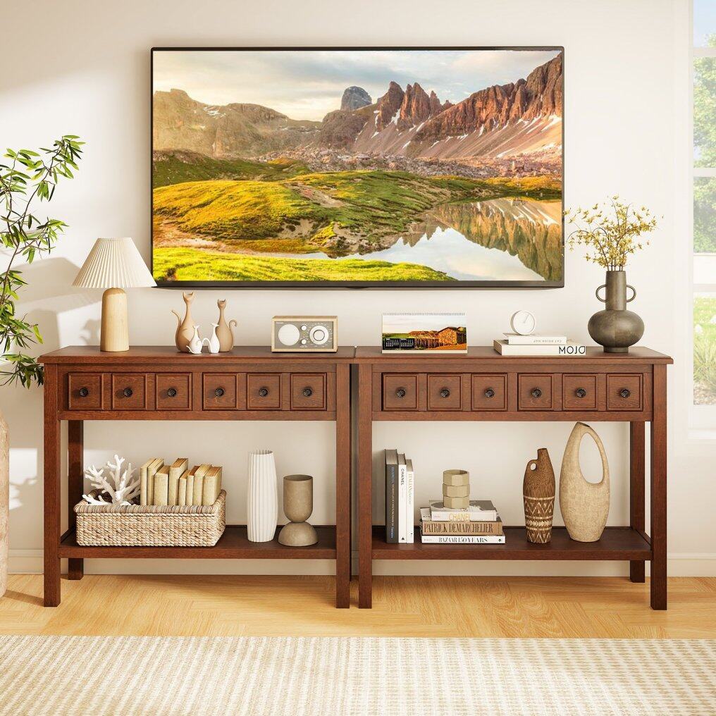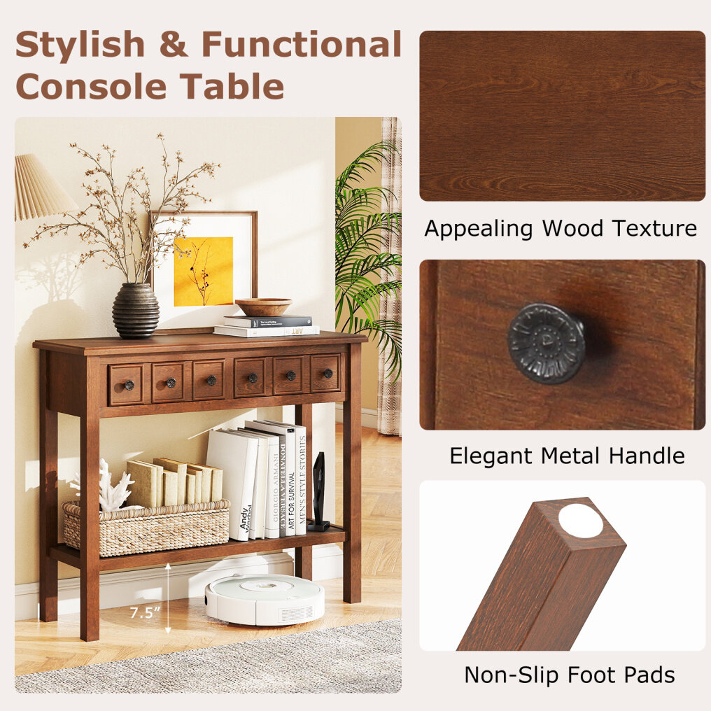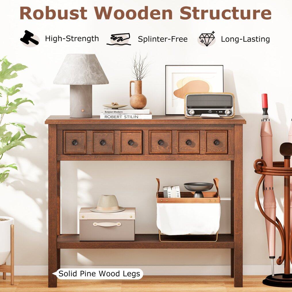 ● Spacious Storage Solutions: Designed with a spacious tabletop, a lower open shelf and 2 two large drawers, this entryway table offers multiple storage areas for keys, books, and decorations. Such a functional storage design will make your living space well-organized.
