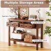 ● Robust Wooden Structure: This rustic console table boasts 4 solid pine wood legs, which are high-strength, splinter-free and long-lasting. Holding up to 180 lbs on the tabletop, it ensures extended reliability for everyday use.
