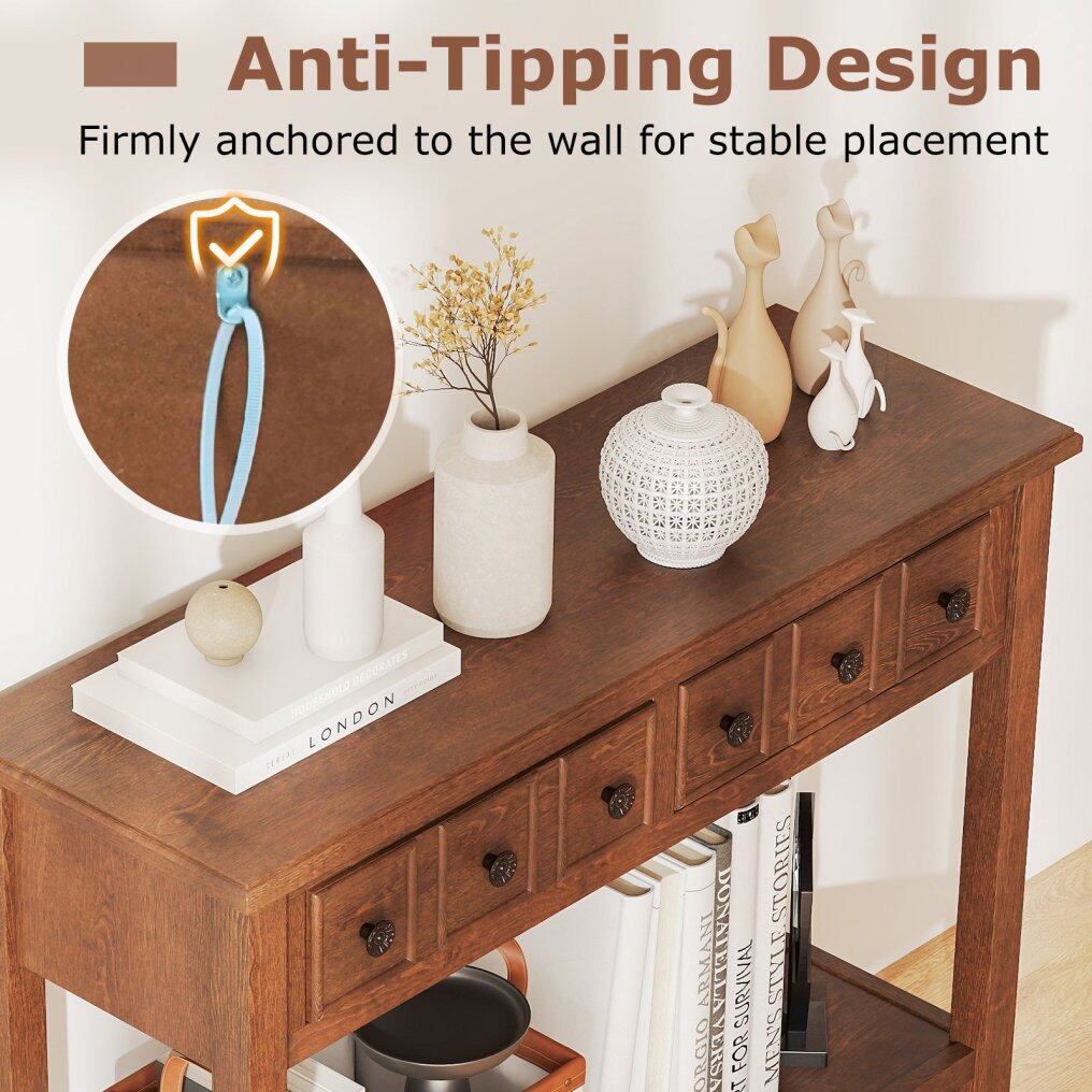 ● Secure Wall Anchoring: Equipped with anti-tip hardware, the narrow storage table can be firmly anchored to the wall for stable placement, ensuring added safety and peace of mind in busy households or tight spaces.