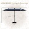 【Durable Coated Fabric Canopy】Featuring high-quality yarn-dyed fabric that provides color fastness, the parasol will last for years. Enhanced with PA coating, the 400cm double-sided parasol is drizzle-resistant and sun-protective, providing you with protection for outdoor recreation.