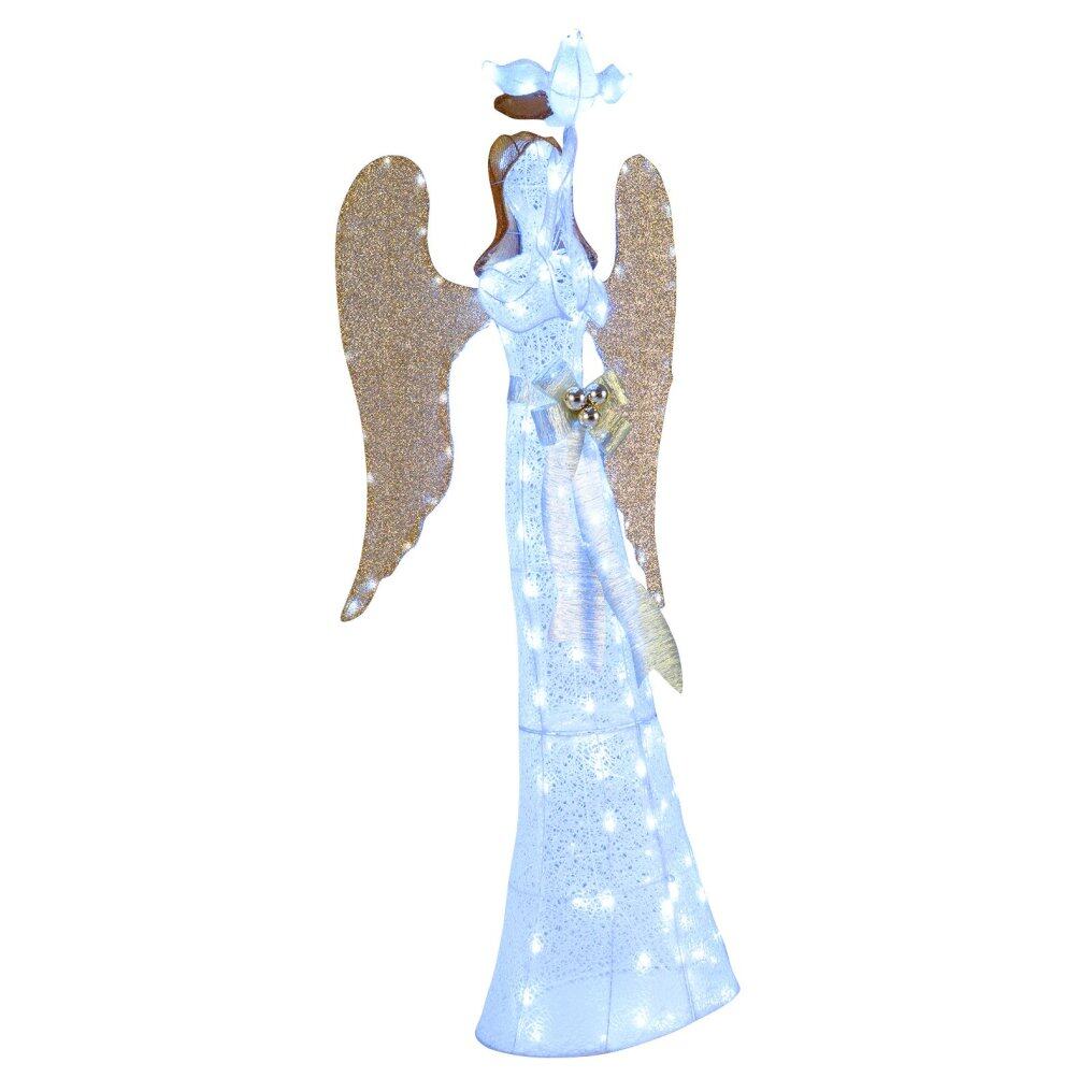 ● 3D Angel Christmas Decoration: This lighted halo angel holding a pigeon is beautifully adorned with shiny wings and a golden bow. The vivid pigeon and divine halo bring a touch of serenity and grace to your Christmas display, evoking a sense of peace and festive cheer.
