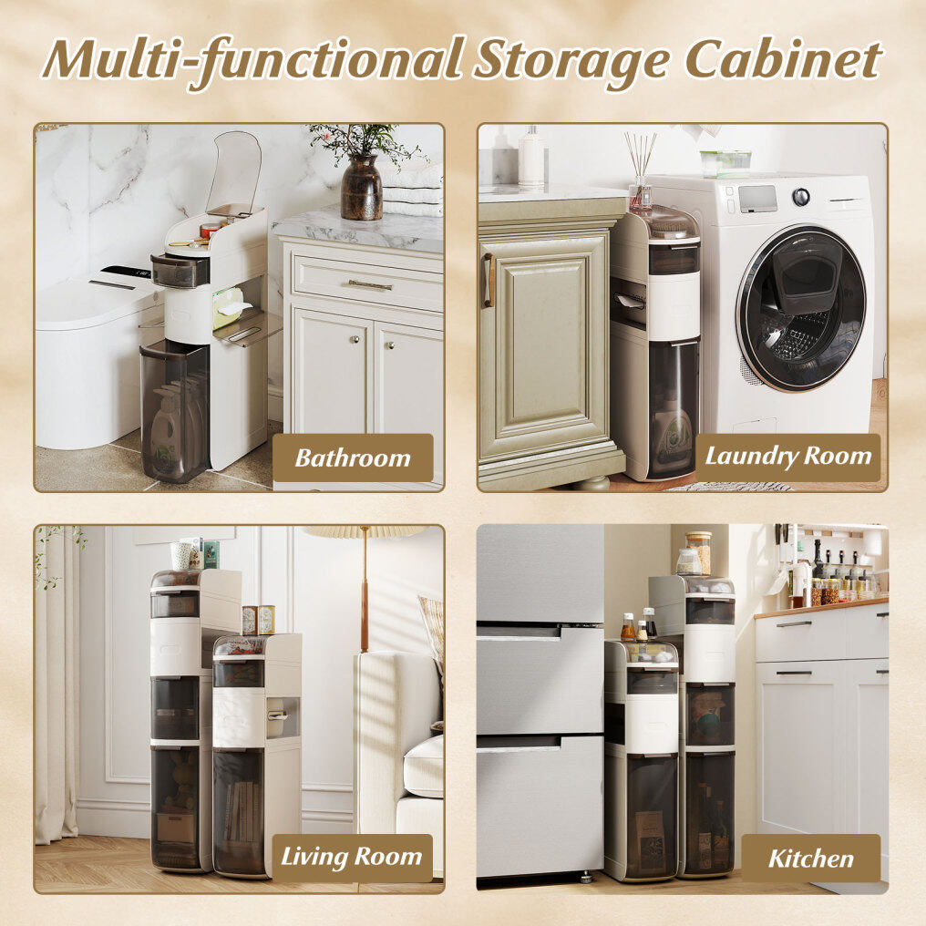● Compact Size for Small Spaces: This narrow bathroom storage cabinet is designed with a width of just 7", making it perfect for tight places. It maximizes vertical space without taking up much floor area, providing ample storage for your essentials.