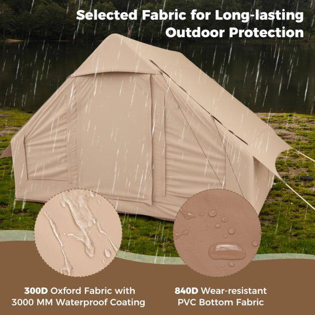 【Quality Fabric for Better Protection】The fabric of this inflatable tent is made of Oxford fabric with a waterproof coating, providing superior protection. The bottom is made of wear-resistant PVC, effectively preventing water from seeping into the tent. Note: Do not use this tent in heavy rain.
