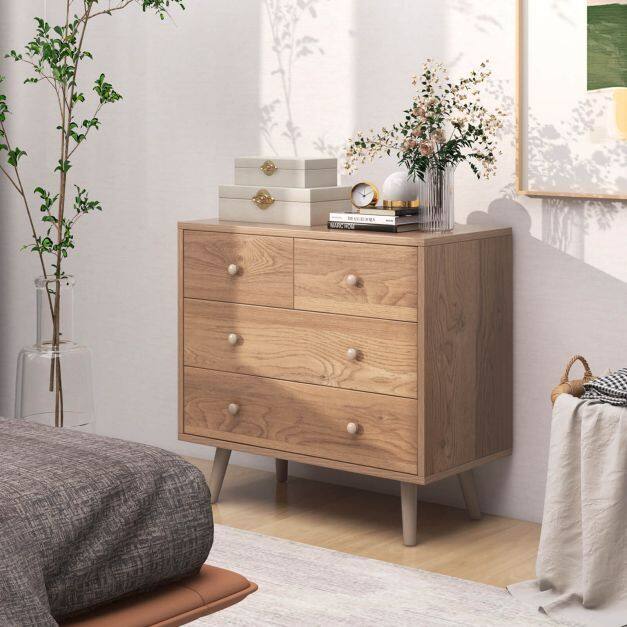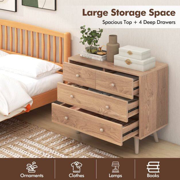 4-Drawer Dresser Modern Storage Chest Cabinet with Handles-Natural