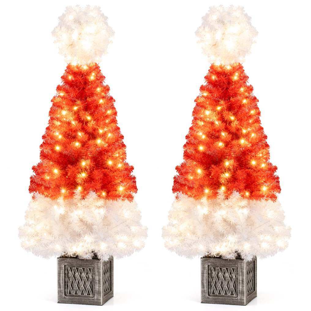 ● Santa Hat-Inspired Design: Infuse your home with Christmas charm thanks to the 4 ft potted Xmas tree's Santa hat-inspired design, which effortlessly stands out in offices, schools, homes, shops, carnivals, and more.