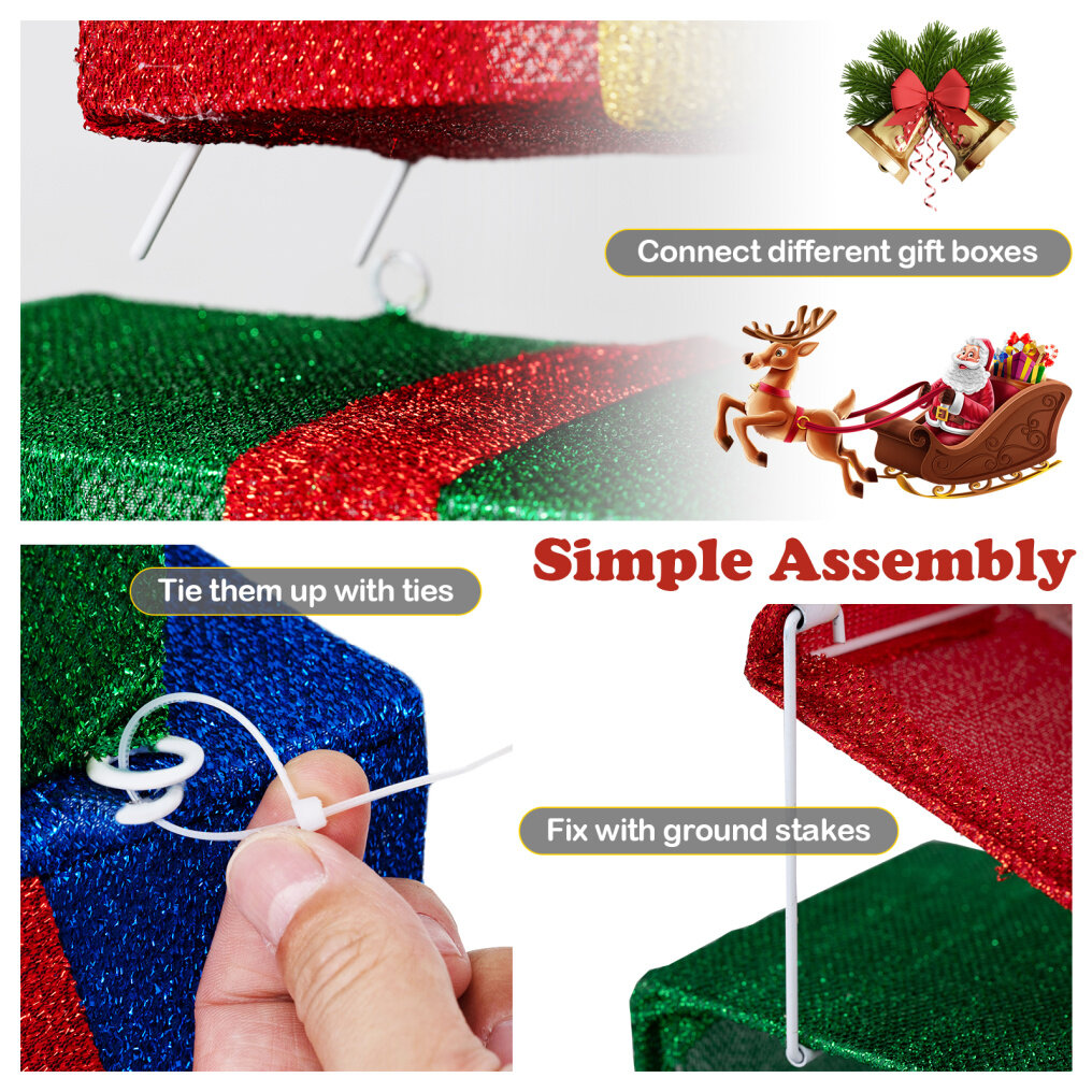 ●2 Display Methods: Designed for flexibility, these pre-lit gift boxes allow you to choose between a stacked display or arrange the boxes separately for a classic look. You can easily adapt your setup to suit any space or occasion.