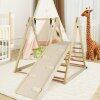 Premium Solid Wood Frame: Crafted with high-quality solid wood, the frame of this wooden climbing set features triangular structures to support your child’s adventures. The indoor playground can accommodate up to 3 children playing simultaneously, with a weight capacity of up to 50kg per child.