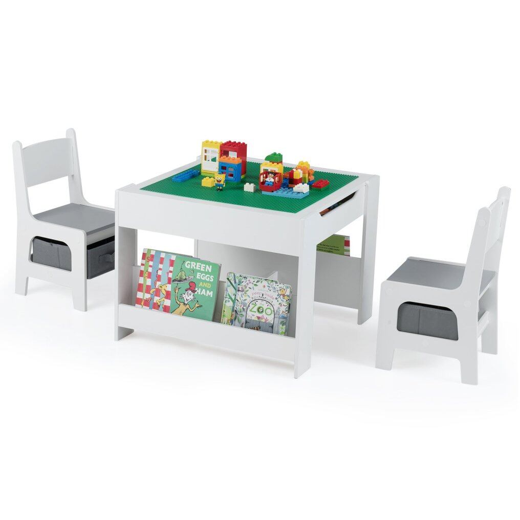 ● 4 in 1 Versatile Design: This children activity table features a clever graffiti and building blocks double-sided reversible tabletop that inspires creativity with art and play. It also provides a spacious study surface and ample storage space for your child's everyday needs.
