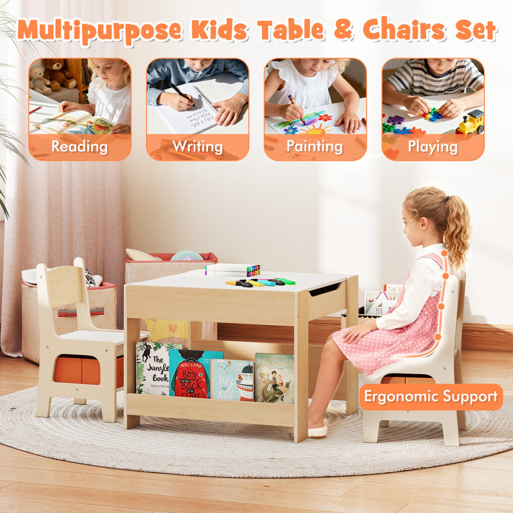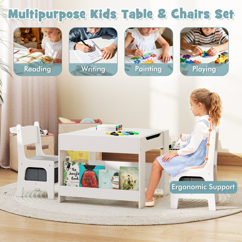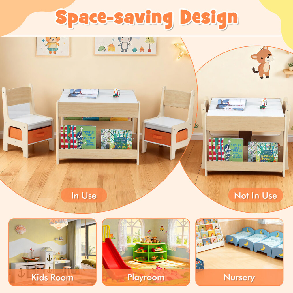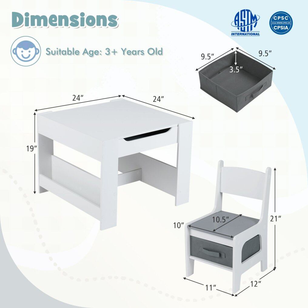 ● Multiple Storage Options: This kids table and chair set is designed with a large hidden storage compartment beneath the tabletop, complemented by additional side bookshelves and 2 removable and foldable fabric drawers under the chairs. Your child's books, art supplies and toys will be neatly organized.