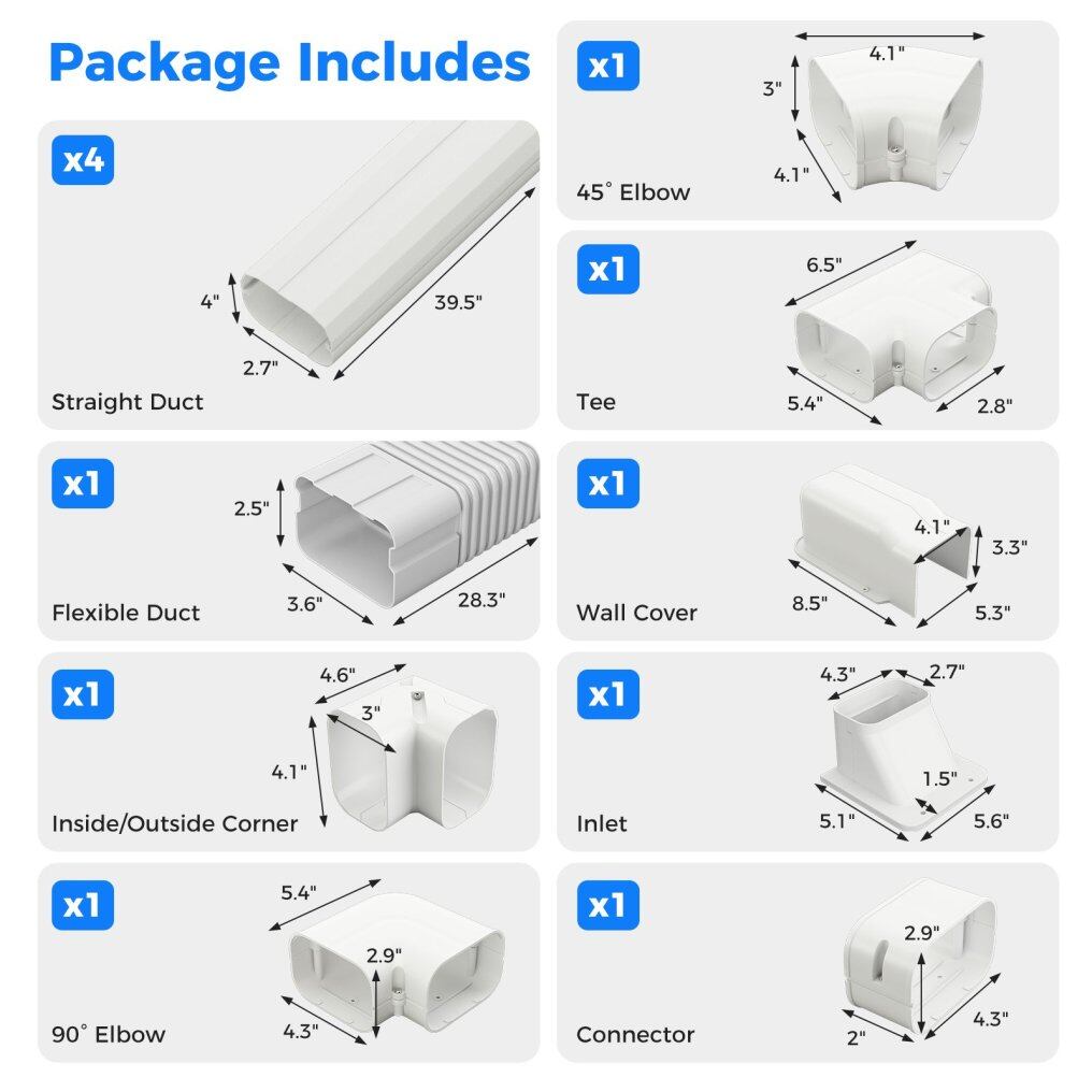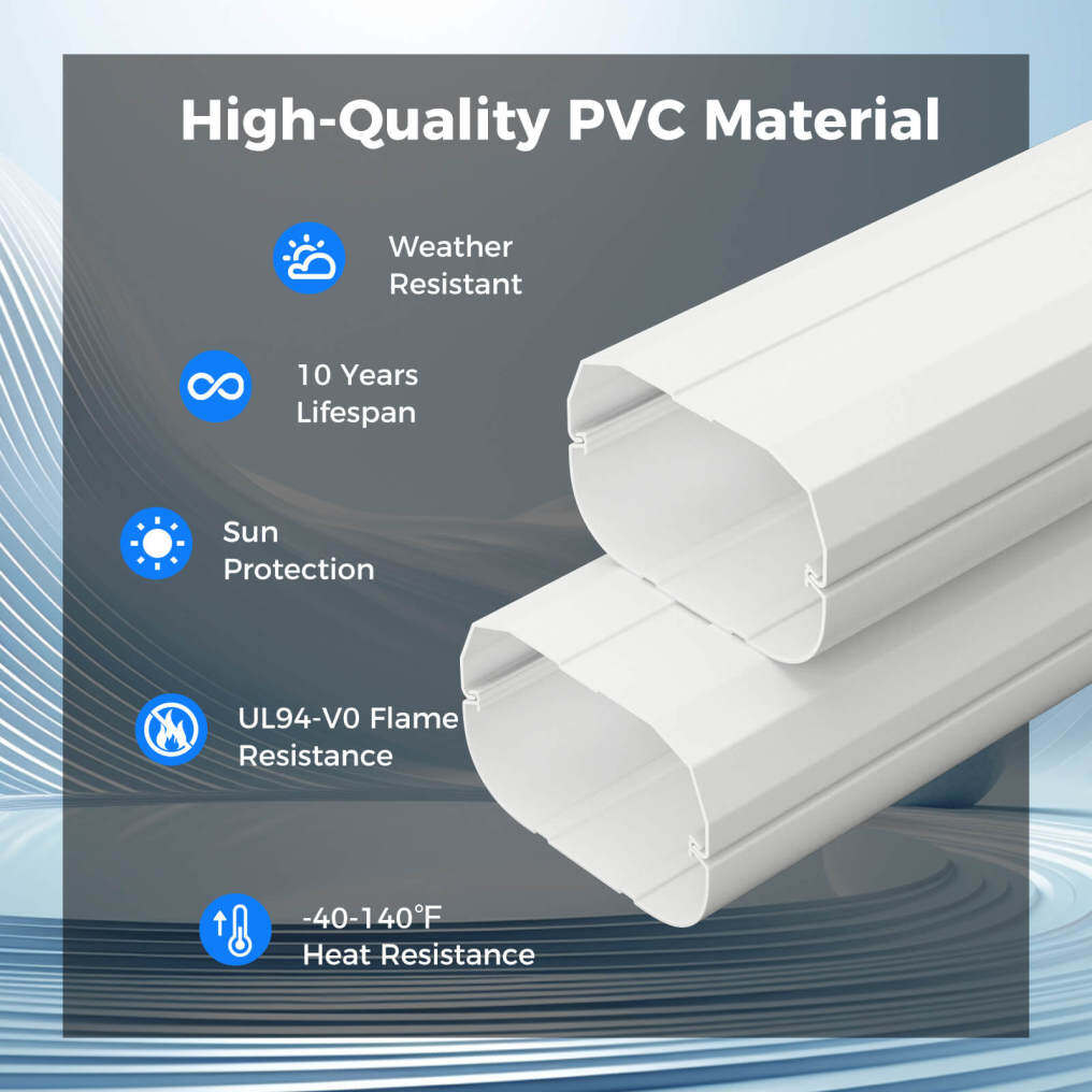 ● Parts Included and Wide Application: This PVC line cover set includes 2 x 39.5" straight duct and 1 x 28.3" flexible duct, and the 4" wide ducts are suitable for most split and central AC with capacities from 7000 BTU to 24000 BTU.