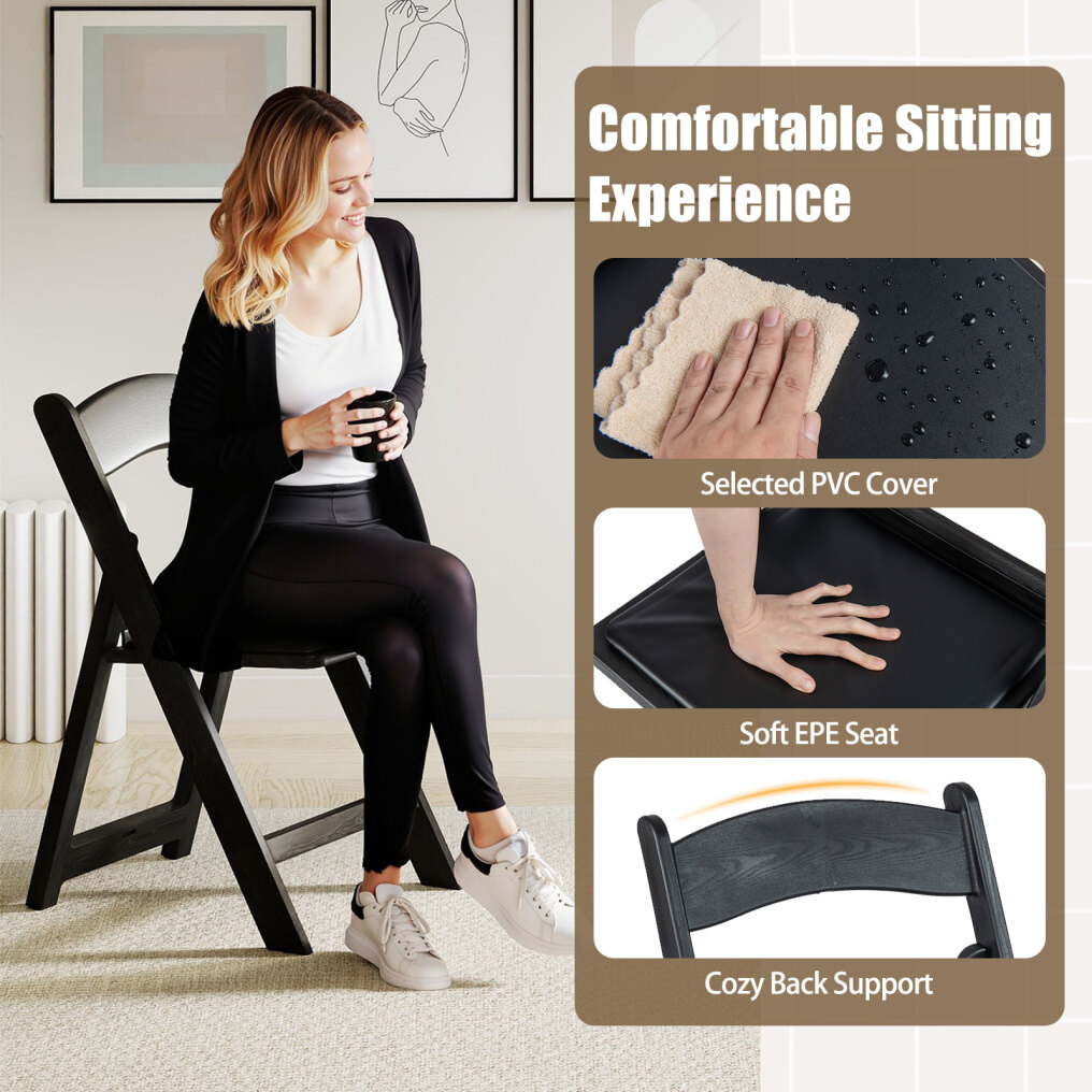 4 Pack Resin Folding Chairs with Padded Seat-Black