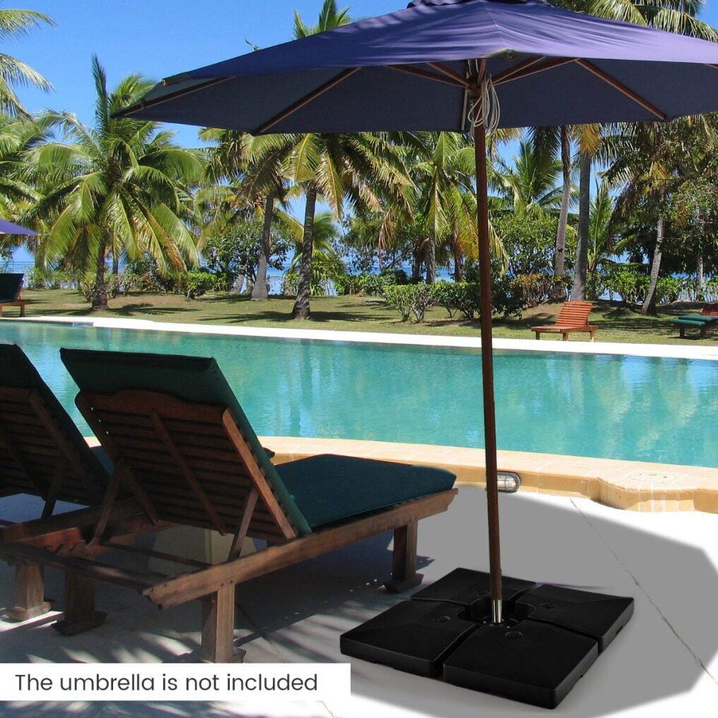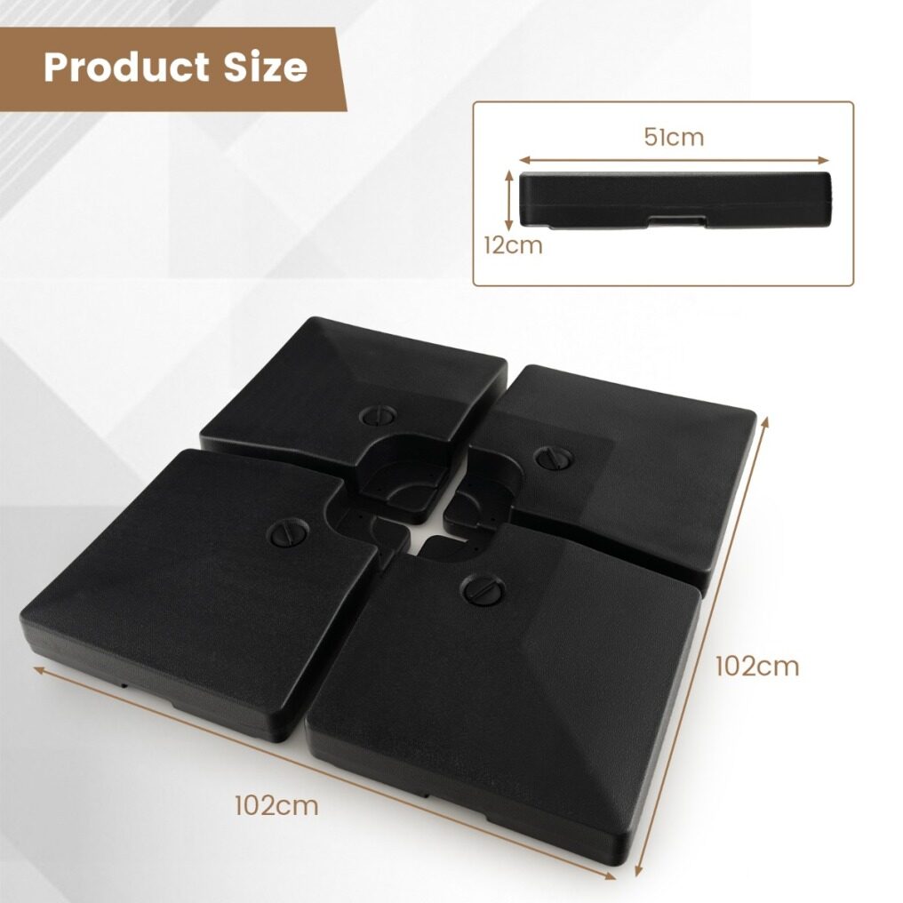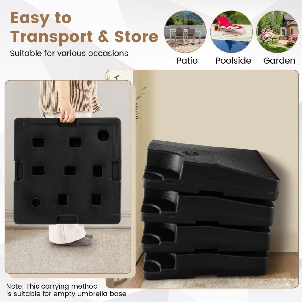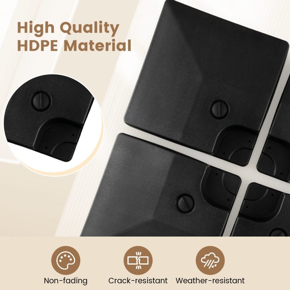 ● High Strength and Durable Material: Constructed of all weather resistant HDPE, the 4 pieces umbrella base set is not easy to crack or fade in any weather conditions. Likewise, the rugged material is deformation resistant for long-term use.
