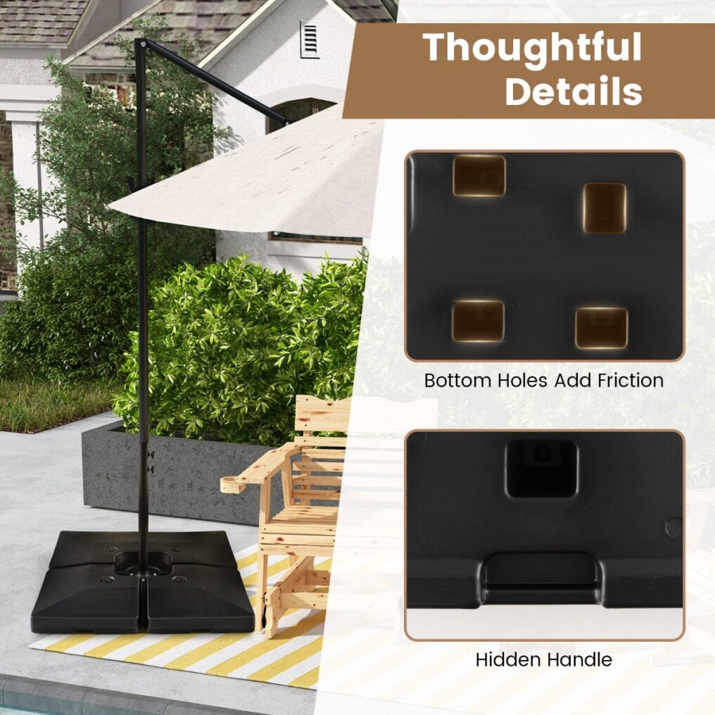 ● Portable and Lightweight Design: Each empty plate only weighs 5.5 lbs, which is effortless for you to move. Besides, built-in handle enables you to transport the patio offset umbrella base to garden, yard, poolside conveniently.