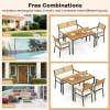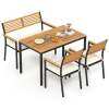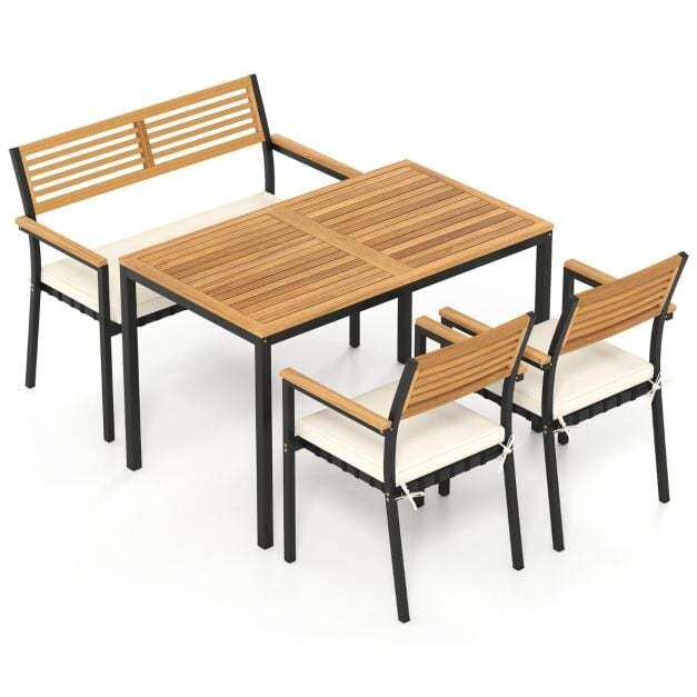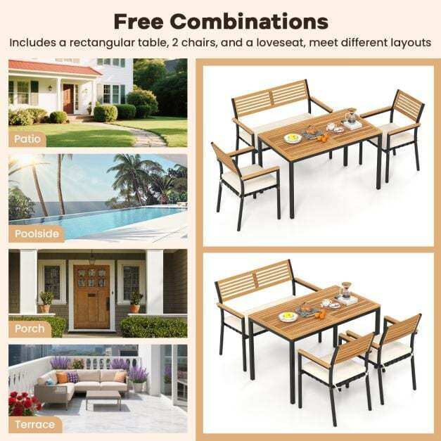 ● Premium 4-Piece Furniture Set: This patio dining set features 1 rectangle table, 2 chairs and 1 bench, offering an ideal spot for conversation or enjoy meals. Besides, the natural acacia wood material is solid, wear-resistant and allows easy maintenance, which adds a touch of warm and exquisite feeling to your outdoor space. Please avoid leaving it outdoors in the rain to extend its lifespan.