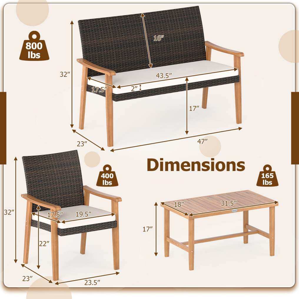 ● Premium Acacia Wood: The acacia wood frame provides a solid, natural foundation for your outdoor conversation set, introducing warmth and organic charm to your outdoor living space. Note: Please regularly apply oil (not included) to wood surface for maintenance.
