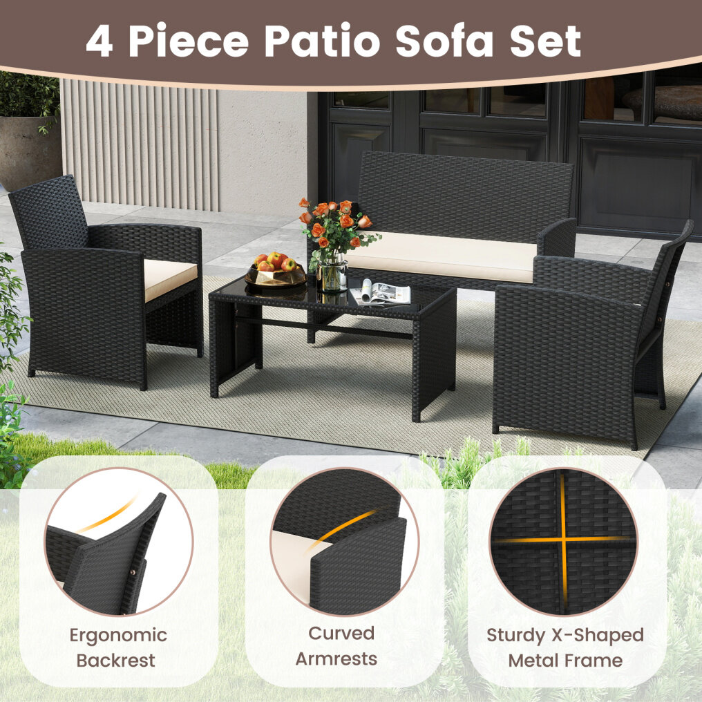 ● Extremely Comfortable Patio Sofa Set: The backrests of our rattan sofa set are ergonomically curved to provide enough support and protect your back. The sofa set will come with 2-inch thick cushions, which allows you to relax completely while sitting on it. In addition, the cushion covers are all removable for easy cleaning and maintenance.