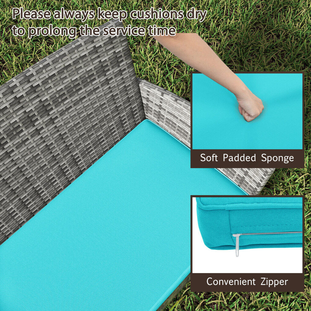 4 Pieces Patio Rattan Conversation Set with Tempered Glass Coffee Table-Turquoise