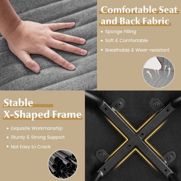 Comfy Sponge Filling Cushion: The seat and backrest are both padded with high density sponge cushion, providing you with a cozy and relaxing ambiance. The soft and breathable fabric adds an exquisite touch, while the wear-resistant material ensures long-lasting durability.