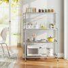 ● More Superior Details: The included detachable shelf liner simplifies cleaning. Simply wipe it with soap or water for a spotless finish. Plus, the 42"L x 18"W x 62"H kitchen storage shelf's spiral connections make installation more convenient.