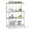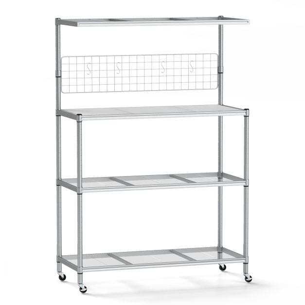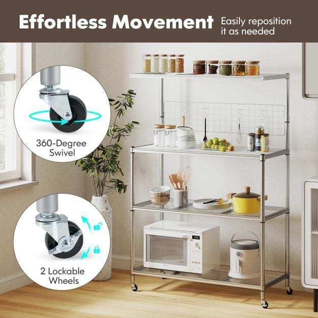 ● Effortless Mobility: Equipped with 4 smooth, wear-proof universal wheels, the utility storage rack glides easily across any floor surface. 2 lockable wheels provide stability and security when you need it, allowing you to lock the rack in place for safe use.