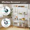 ● Height Adjustable Design: Featuring 3 adjustable shelves and a customizable hanging net, each with 1" increment options, the coffee bar table provides the flexibility to accommodate a variety of item sizes, from large appliances to small spice jars.
