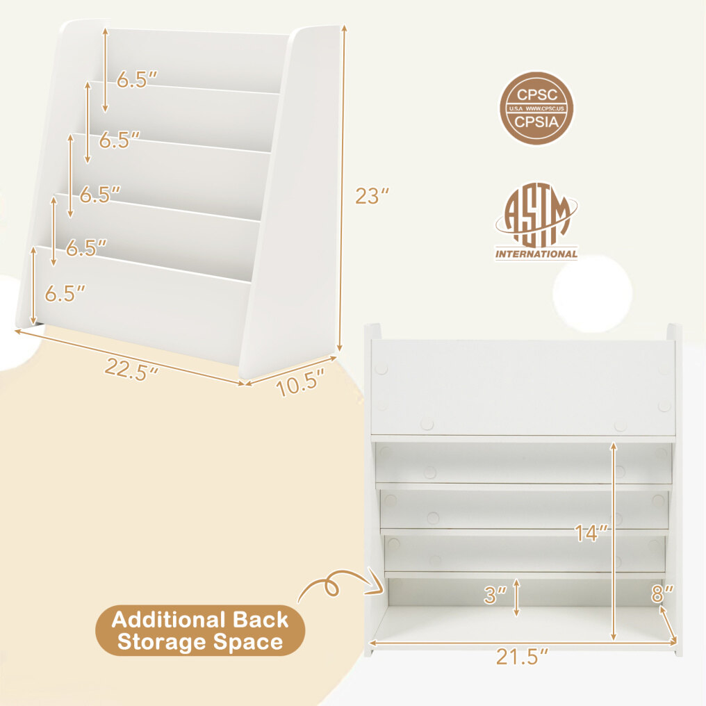 ● 23" Optimal Height and Open Design: The 23 inches optimal height keeps all the books accessible. Moreover, the front-facing open design allows kids to easily store or take out their favourite books, which helps to cultivate reading habits.