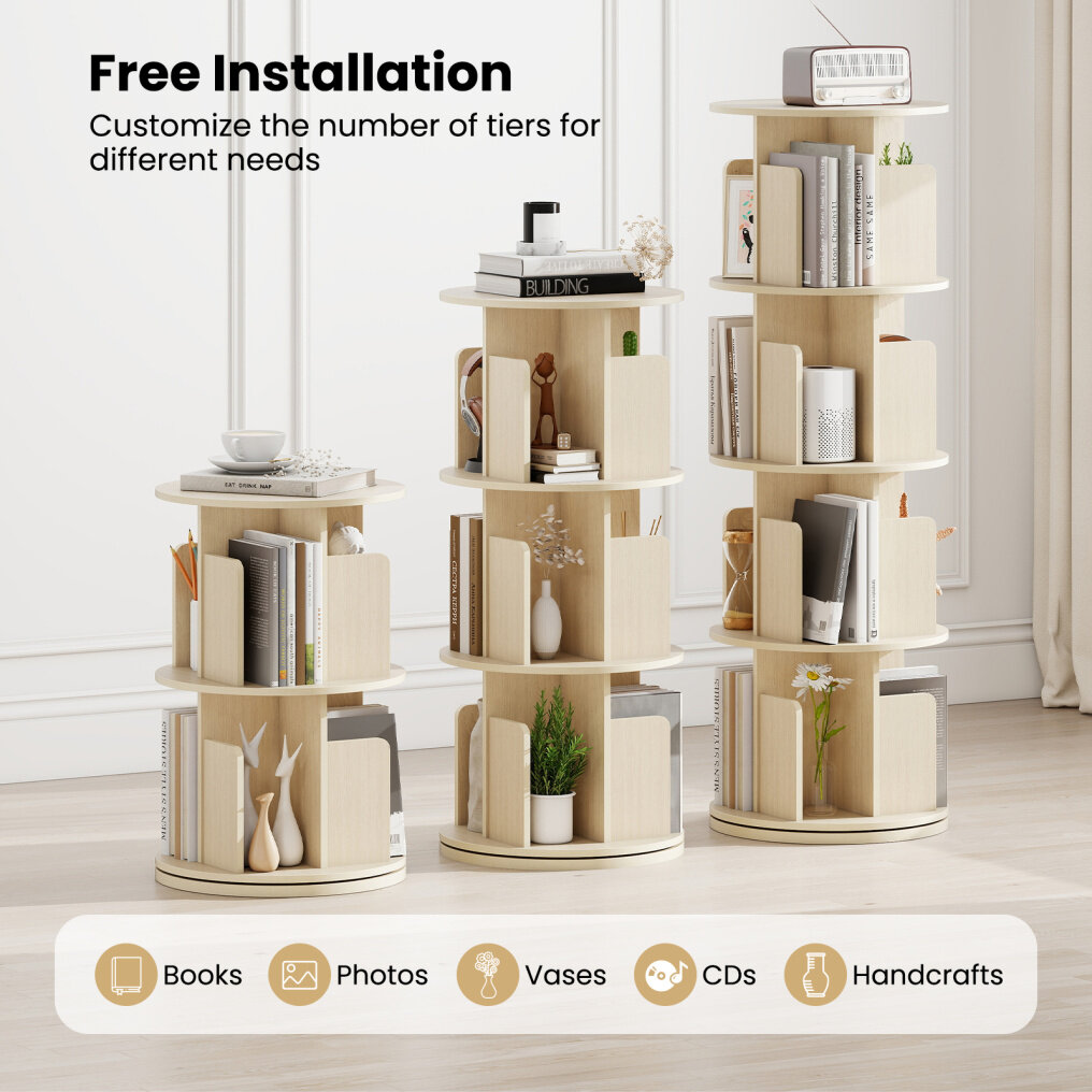 ● Spin, Display and Repeat: The freestanding bookshelf features a 360° swivel plate that enables you to show off your entire collection from every angle. This design ensures easy access from any direction, making it convenient to browse and retrieve items.