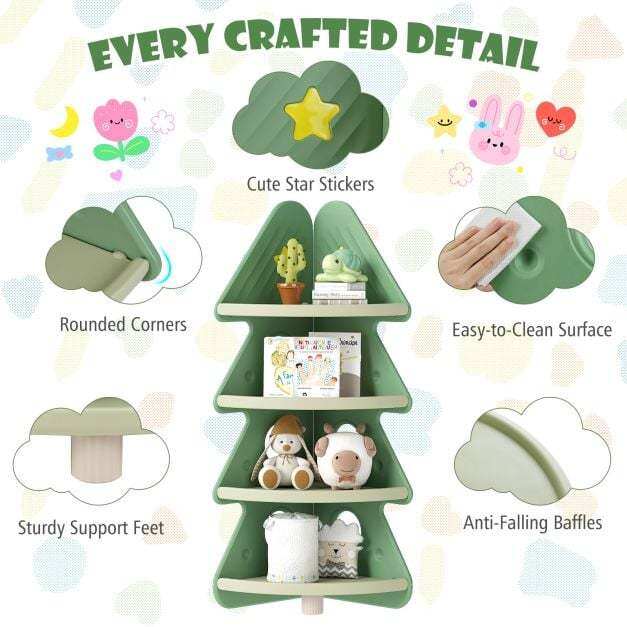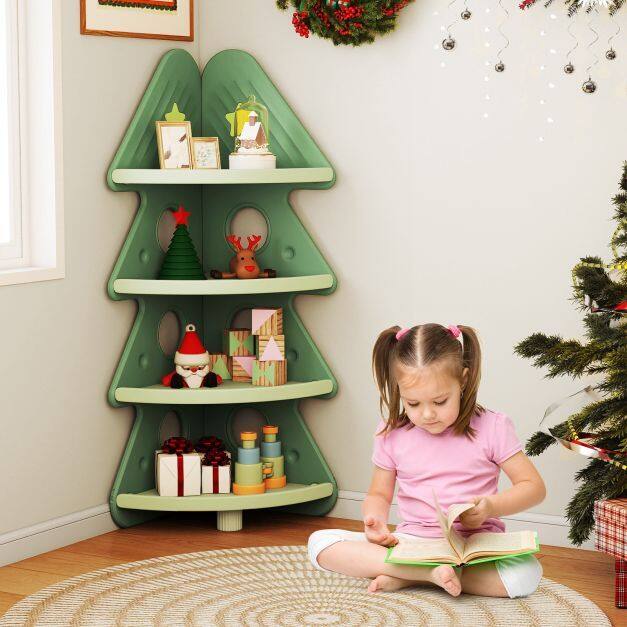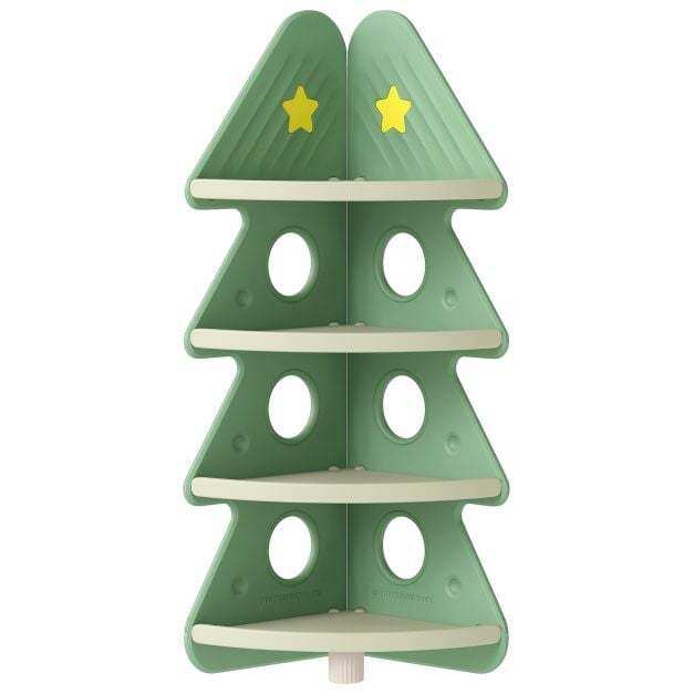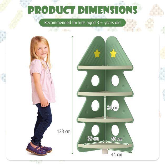Playful Christmas Tree Design: This enchanting 4-tier kids corner bookshelf features a unique Christmas tree silhouette and cheerful star patterns. It instantly brings holiday cheer to kid's room, making story time magical for children ages 3 and up.