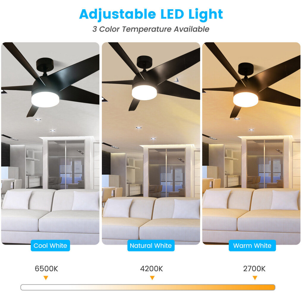 ● 2-in-1 Multifunctional Design: This ceiling fan with LED light perfectly combines the cooling and lighting functions, satisfying your multiple demands. Moreover, there are 3 light colors for you to choose from: 6500K cool white, 4200K natural white and 2700K warm white, which decorate your living or relaxing space well and create a soothing atmosphere for you.