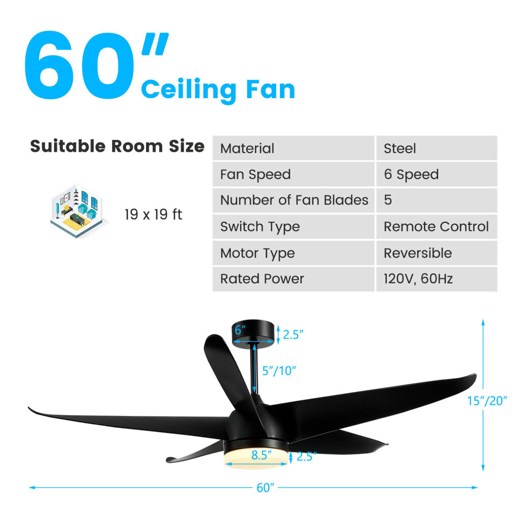 ● Mount As You Like: The ceiling fan is equipped with two downloads of different lengths: 5" and 10". You can choose the right download according to the distance from the ceiling to the floor for utmost airflow. Apart from that, the fan can be also installed on an angled surface that is less than 15°. And this ceiling fan is suitable for rooms. measuring 19 ft x 19 ft.