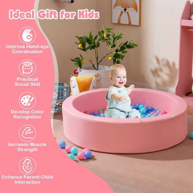 42.5 Inch Round Foam Ball Pits with 25D Sponge Filling and Washable PU Cover for Toddlers-Pink