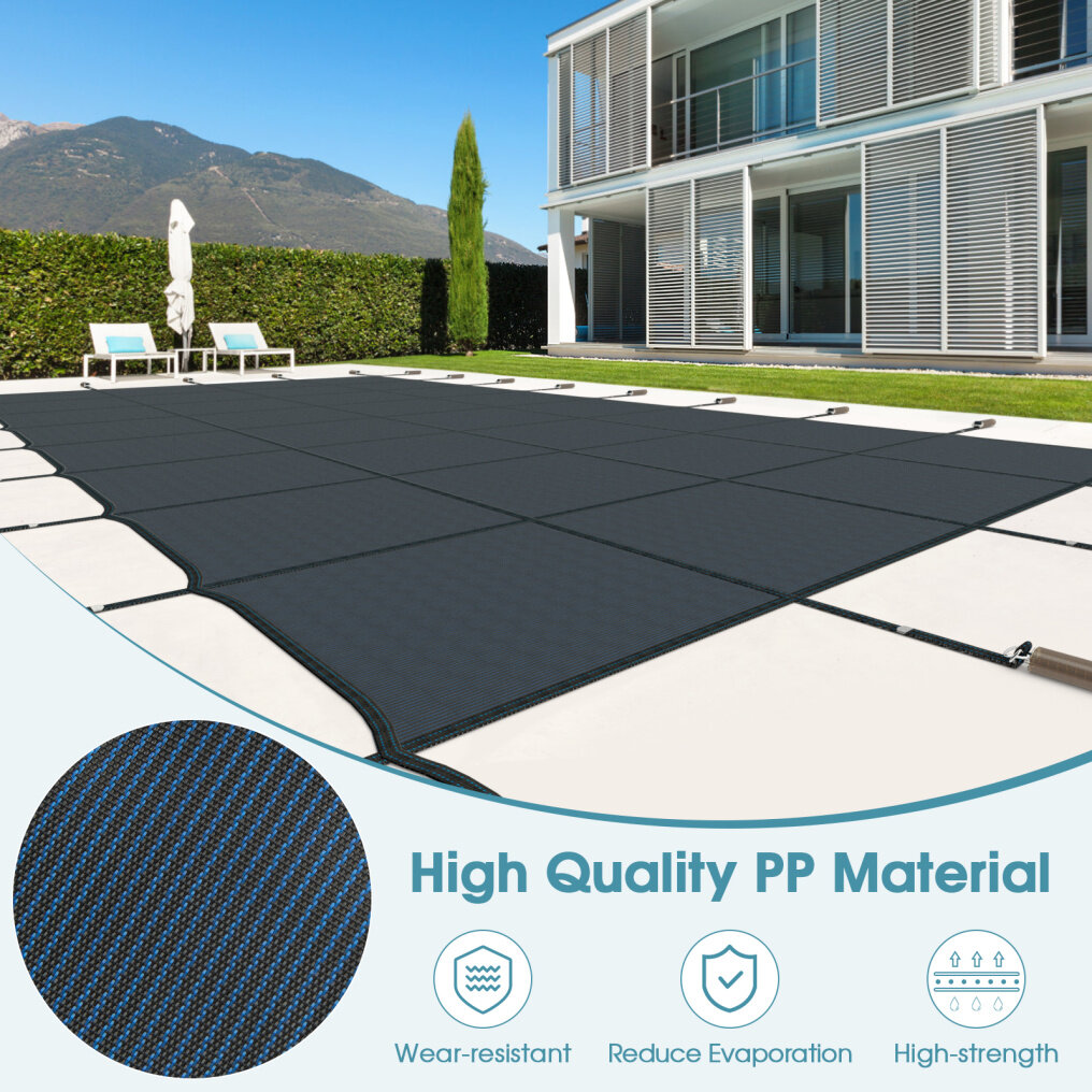 ● Premium Pool Safety Cover: Made of high-quality PP material, this in-ground pool cover is wear-resistant and high-strength to withstand long term use. Moreover, it can also help to reduce evaporation of the swimming pool.