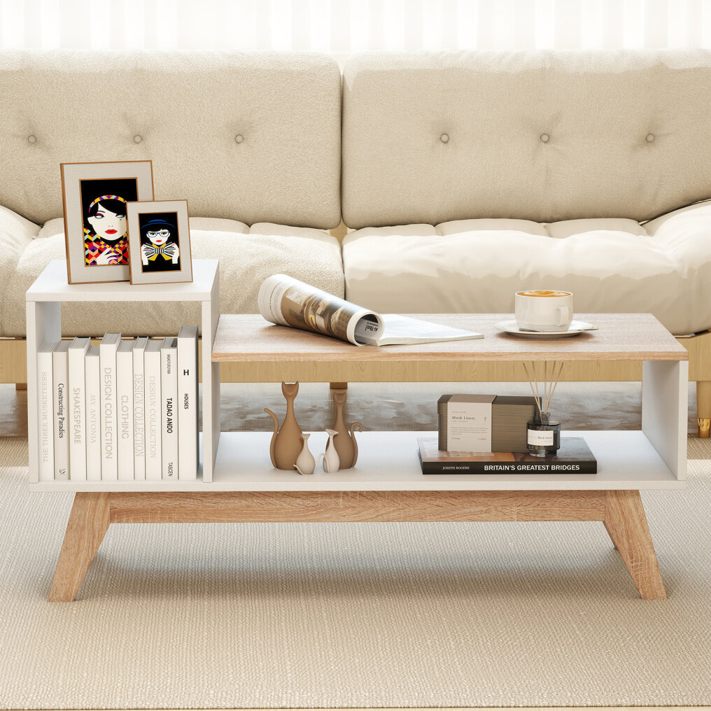 ● Ample Storage Space: The coffee table boasts a 43" long stepped tabletop designed for partitioned storage area, complemented by 2 open compartments, ensuring your essentials are both tidy and within reach.