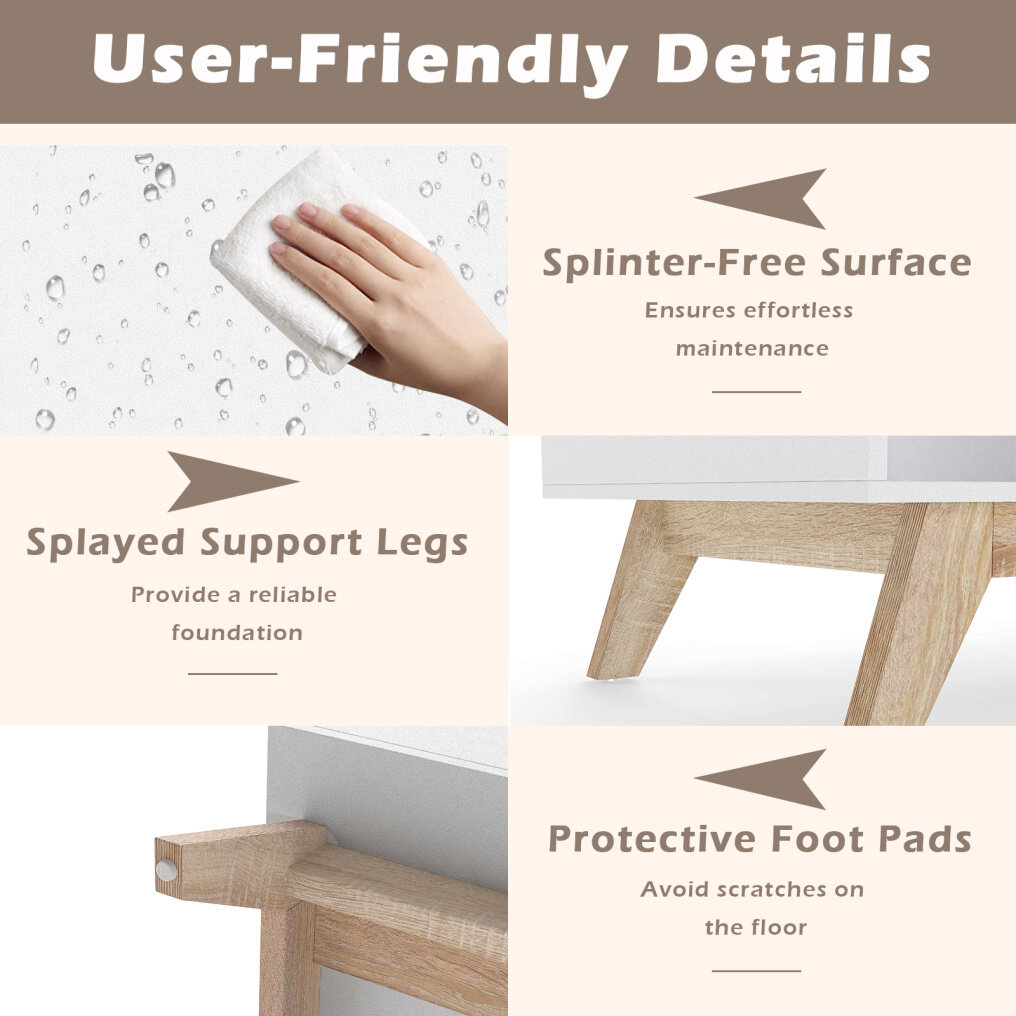 ● Easy to Maintain: The 43"L x 19"W x 21"H coffee table is designed with a 5" high bottom clearance that simplifies sweeping underneath. Also, its surface is splinter-free, making daily maintenance a breeze.