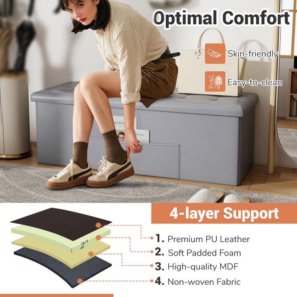 ● 38 Gallon Storage Capacity: This 43-inch storage ottoman with removable divider features a 38 gal capacity, allowing you to arrange inner space to store blankets, cushions and out-of-season clothes. Plus, the side pocket keeps items at hand.