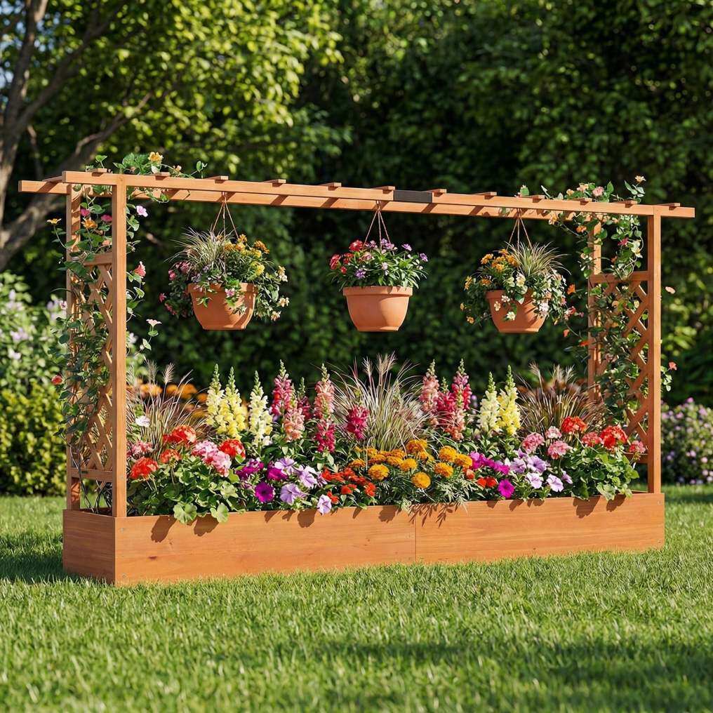 ● Perfect for Outdoor Spaces: The freestanding garden bed with trellis is ideal addition for various places like patio, garden, and balcony. The elevated design creates a comfortable and organized growth environment for your plants.