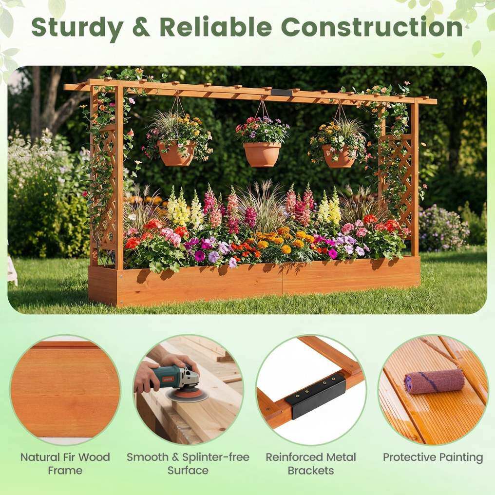 ● Solid Fir Wood Construction: The solid fir wood garden bed is built to resist deformation or cracking through changing seasons. Tight metal bracket connections further enhance structural strengths. With smooth splinter-free surface as well as safe and user-friendly painting, you won't be scratched during use.