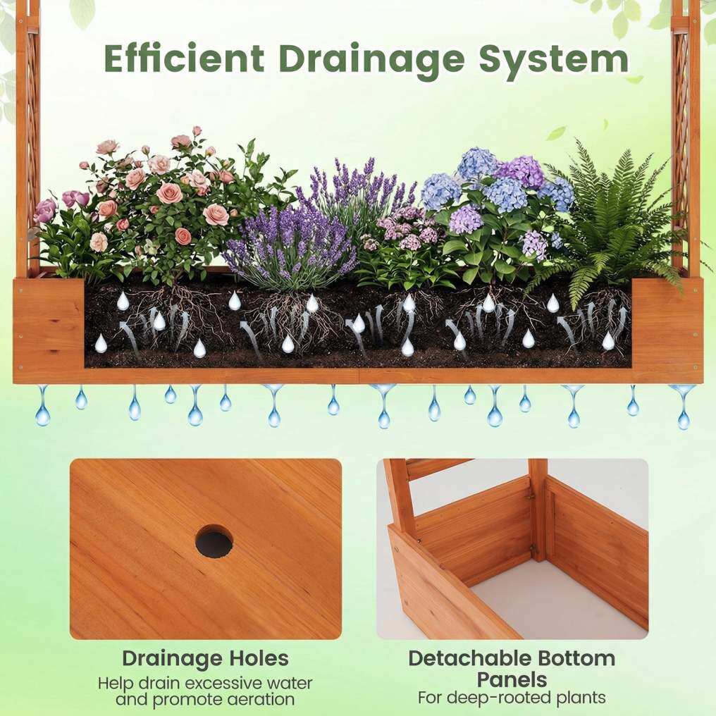 ● Efficient Drainage System: Designed with 8 drainage holes, this raised planter box avoids water accumulation and facilitates air flow around plant roots. Detachable bottom panels support healthier and more robust plant growth by allowing roots to go further into the ground.