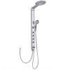 It is equipped with waterfall round head shower, hand shower and several massage jets. It features silver finish and owns a smooth, bright and elegant look. It is very popular with people from all walks of life and it is perfect for your home or apartment. Immerse yourself in a truly relaxing shower experience and enjoy the modern style of this beautifully designed shower column.
